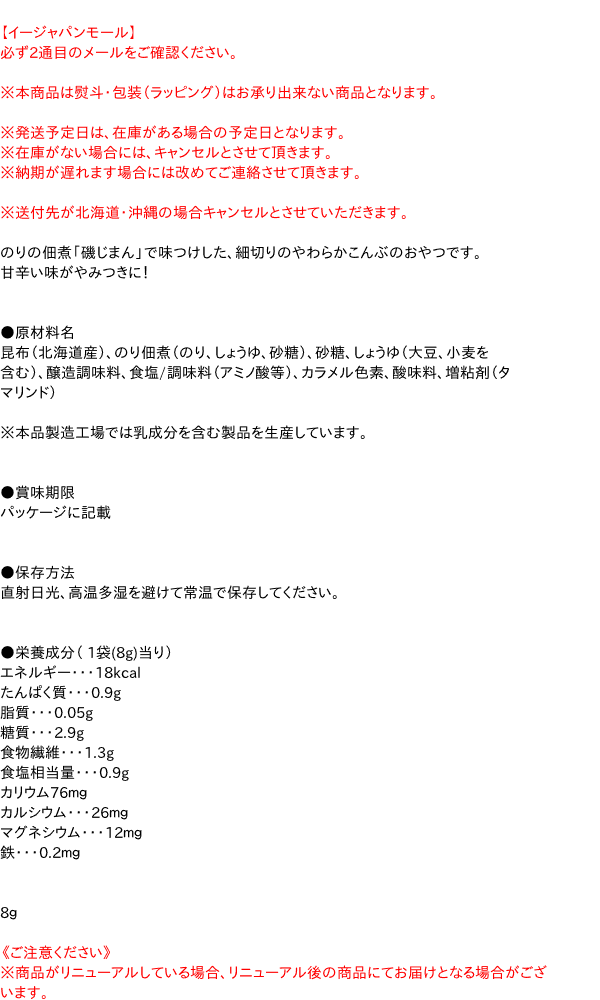 【キャッシュレス5%還元】前島タベタロウ磯じまん使用おやつこんぶ8g【イージャパンモール】